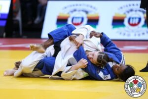 Clarisse Agbegnenou en judogi blanco