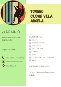 Se realizó con éxito el Torneo Ciudad Villa Angela organizado por la Asociación Jita Kioei-Dojo Ovando a cargo de los profesores Jorge Ovando y Natalia Ovando en las instalaciones del Club Alvear, con la participación de numerosos judokitas y competidores pertenecientes a Equipos de Tucuman, Formosa, Chaco, Santiago del Estero y Misiones.